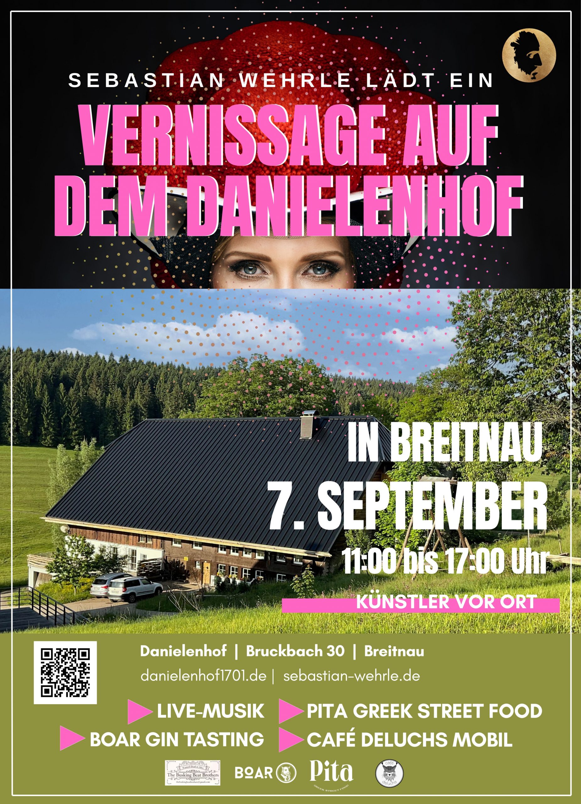 Am Sonntag, den 7. September 2025, öffnet der traditionsreiche Danielenhof1701 in 79874 Breitnau seine Tore für ein ganz besonderes Event: Fotokünstler Sebastian Wehrle präsentiert exklusive neue Werke im Rahmen einer ganztägigen Vernissage von 11:00 bis 17:00 Uhr. Besucher*innen dürfen sich auf ein inspirierendes Zusammenspiel von Kunst, Musik, Kulinarik und Schwarzwaldflair freuen.